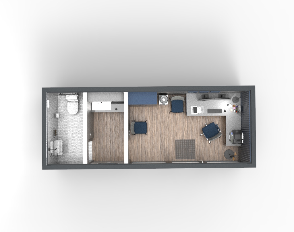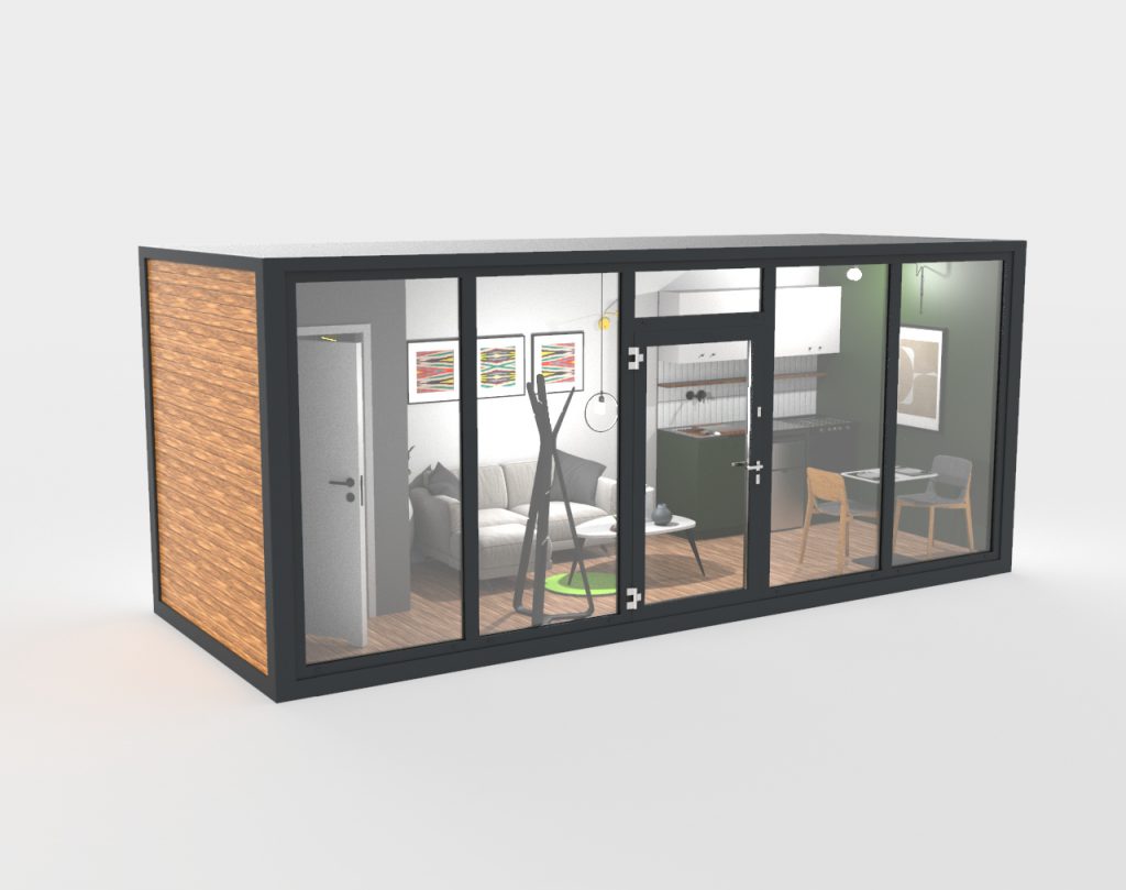 Oferujemy gotowe projekty mobilnych domków, przestrzeni biurowych, przestrzeni handlowych, w różnych konfiguracjach.